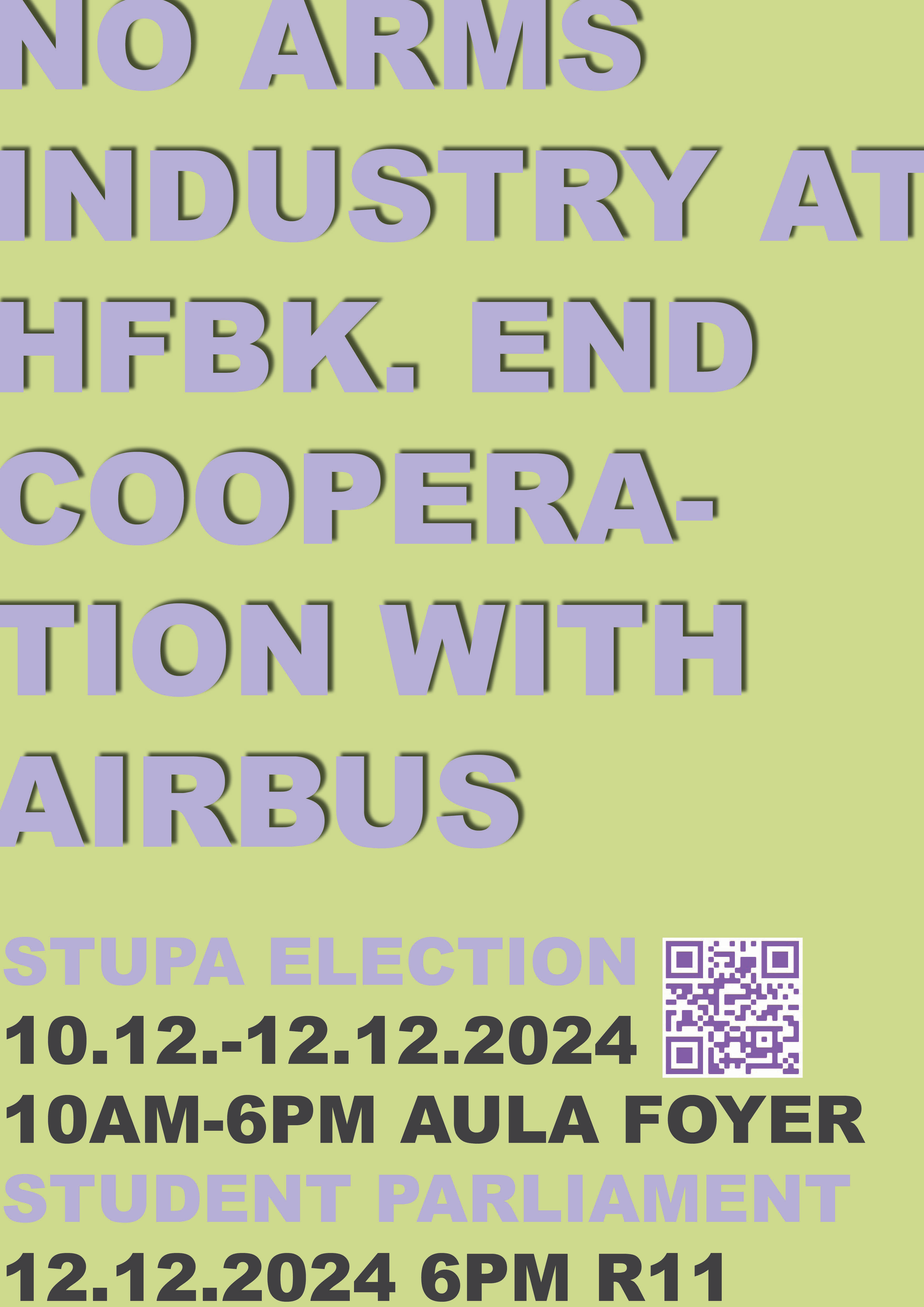 There are hardly any common spaces at hfbk, which are needed in order to organize ourselves as students. For example, in order to address recent issues such as: the timely payment of student workers; ending cooperation with the arms industry; the schools relation to current wars and political events; creating structures against all forms of racial, gender or any other form of discrimination, making the school accessible not only to those who are privileged, but to everyone; and to engage in artistic practices and political projects that counter hegemonic capitalist and neoliberal logics. For these reasons, we believe it is necessary to create spaces to get together and discuss these urgent political issues. AStA therefore invites you to the general student assembly. The assembly will be held mostly in English, but can be translated into other languages if required.
